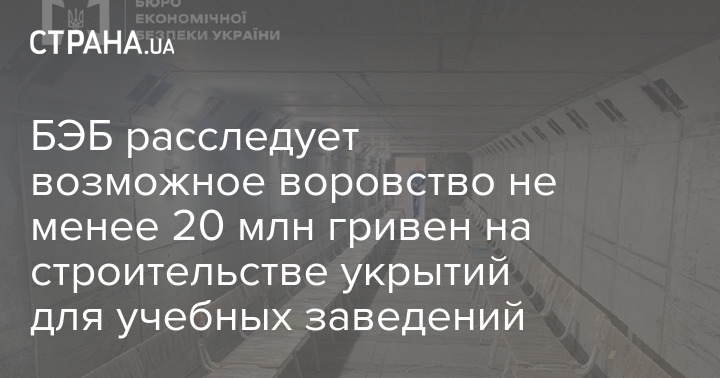 Бюро экономической безопасности Украины расследует возможное воровство не менее 20 млн гривен на строительстве укрытий для учебных заведений в Киевской области.