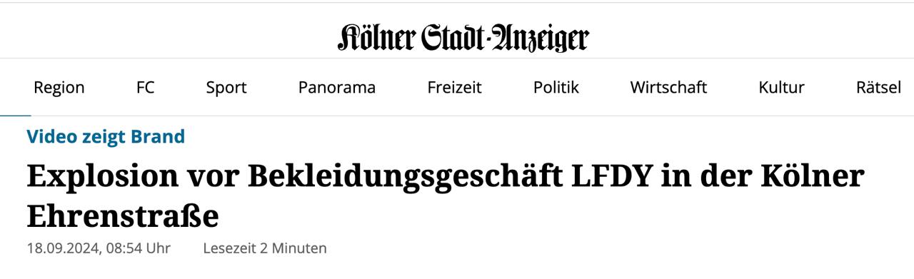 В немецком Кельне сегодня утром снова прогремел взрыв - перед магазином одежды.