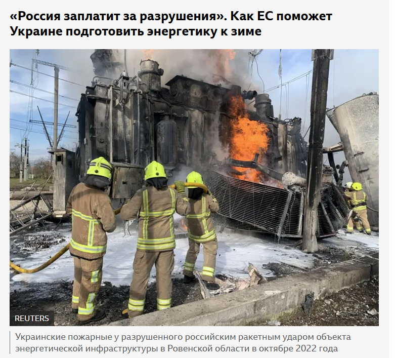 "Через две недели начинается отопительный сезон. Одновременно с похолоданием Европейский союз готов увеличить помощь Украине. Мы готовимся к зиме вместе", - приводит слова фон дер Ляйен BBC.