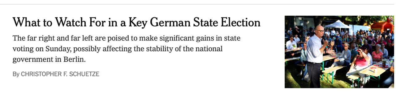 Ожидается, что в Бранденбурге, как ранее в Саксонии и Тюрингии крайне правые и крайне левые добьются значительных успехов, ослабив власть левоцентристских и правоцентристских партий.