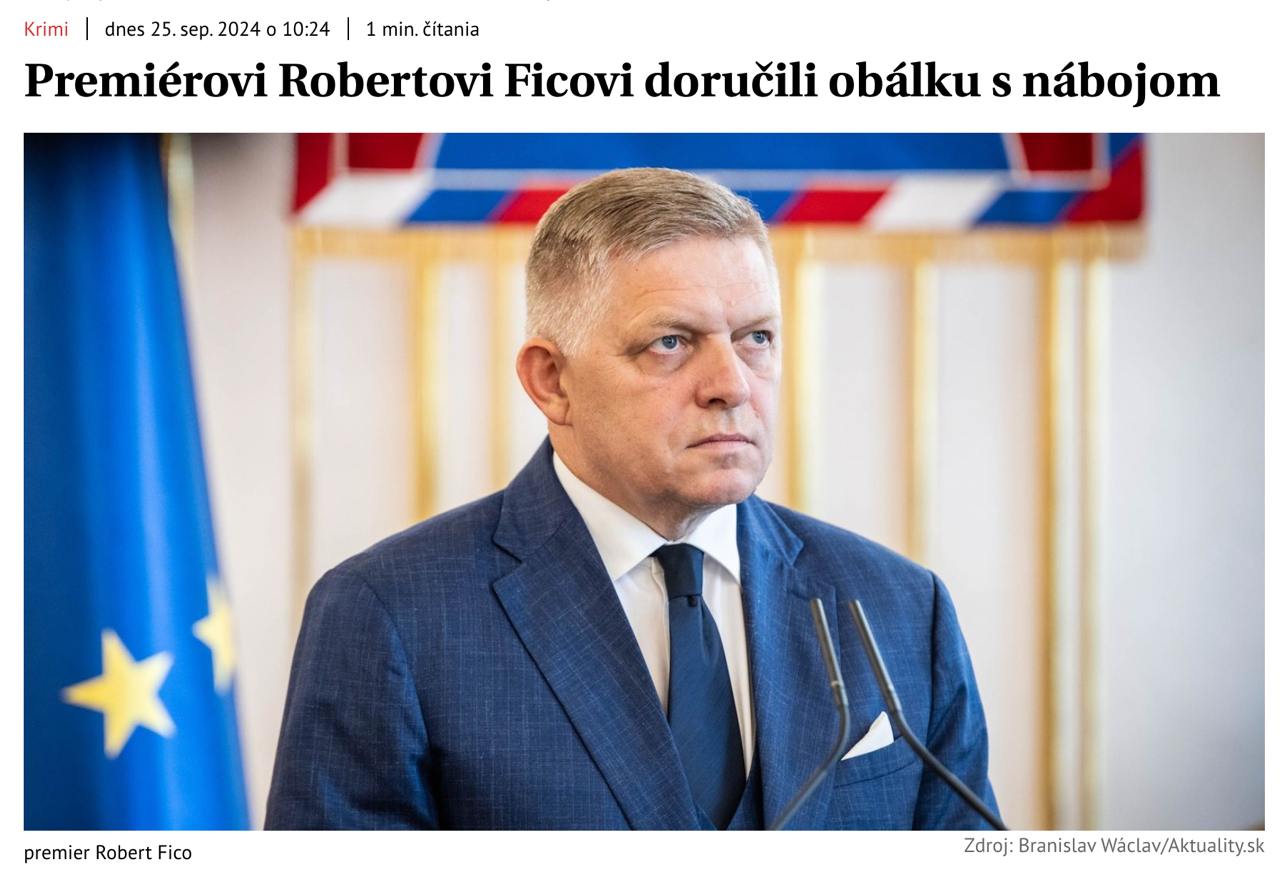 "Мы можем подтвердить, что конверт с пулей, адресованный премьер-министру Словацкой Республики, был доставлен сегодня в канцелярию правительства", - заявило ведомство в комментарии Aktuality.