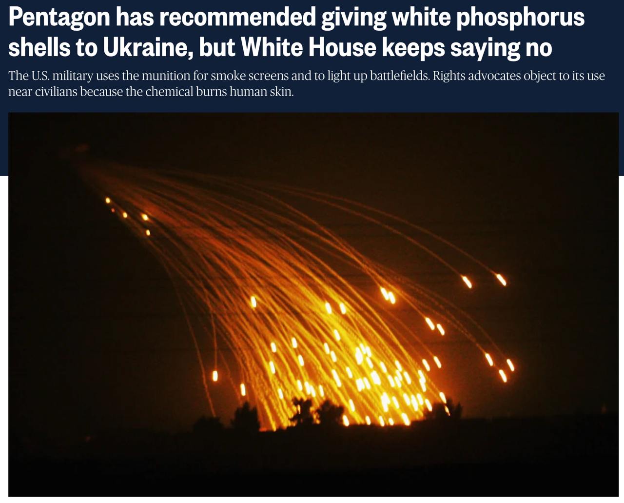 Пентагон рекомендовал предоставить Украине снаряды с белым фосфором, Белый дом выступает против.