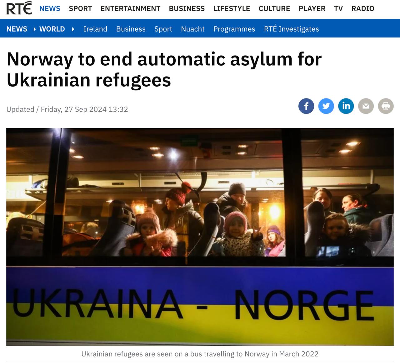 Норвегия прекратит автоматически предоставлять убежище украинским беженцам из Западной Украины.
