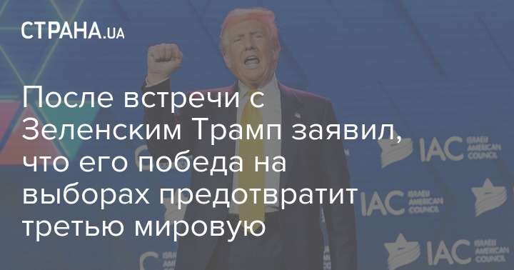После встречи с Владимиром Зеленским кандидат в президенты США Дональд Трамп заявил, что его победа на выборах поможет предотвратить третью мировую войну.