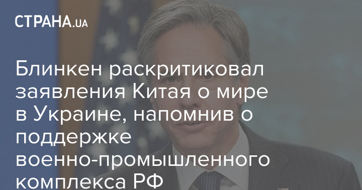 Блинкен раскритиковал заявления Китая о мире в Украине, напомнив о поддержке военно-промышленного комплекса РФ