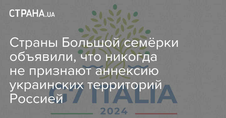 Министры иностранных дел стран Большой семёрки (G7) заявили, что никогда не признают аннексии украинских областей Россией.