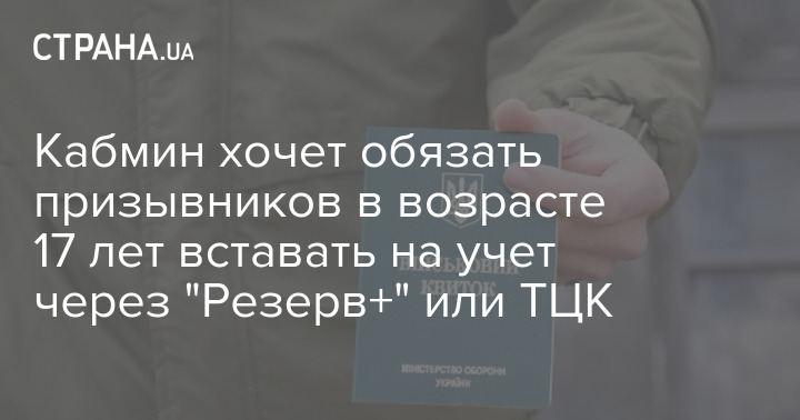 Кабинет министров внес в Верховную Раду законопроект, которым хочет обязать призывников в возрасте 17 лет вставать на учет через "Резерв+" или путем явки в ТЦК.