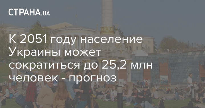 К 2051 году население Украины может сократиться до 25,2 млн человек. Об этом говорится в прогнозе Института демографии и проблем качества жизни НАН, приведенном в Стратегии демографического развития страны на период до 2040 года.