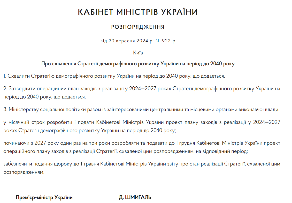 Среди причин сокращения населения правительство называет войну, миграцию, сокращение рождаемости и рост смертности, старение населения, частые преждевременные смерти, отказ населения от заведения детей, ухудшение здоровья из-за неспортивного образа жизни украинцев и плохой медицины в условиях войны.