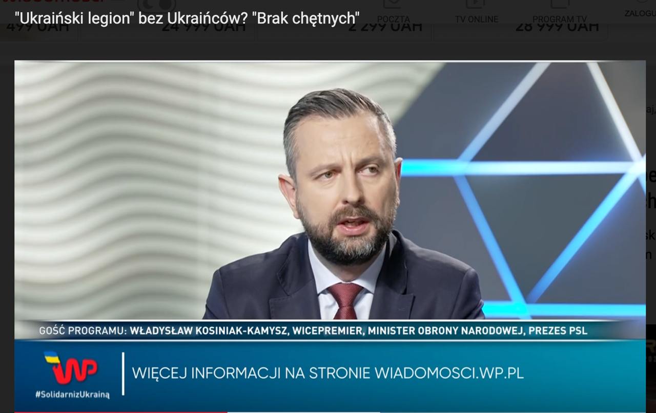 Об этом заявил польский министр нацобороны Владислав Косиняк-Камыш в эфире местного ТВ.