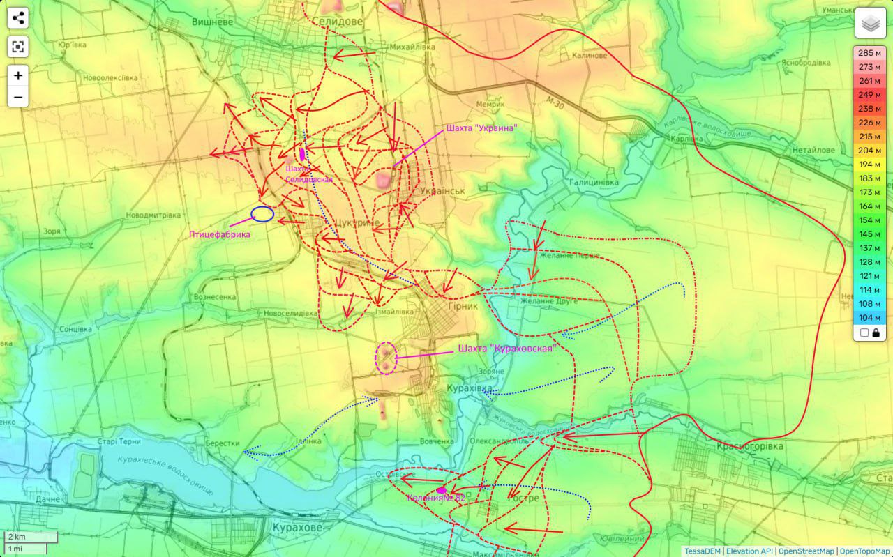 Ранее мы подводили итоги предыдущего дня войны. Россияне активизировали атаки с севера в направлении Курахово и сосредоточили свой удар в районе населенного пункта Цукурино, который расположен между Горняком и Селидово. Взятие Цукурино откроет дорогу армии РФ в сторону Курахово и позволит обойти Селидово с юга. Украинские военные сообщали, что "возрастают проблемы" к северу от Селидово, где российские войска пытаются перерезать сообщение города с Покровском.