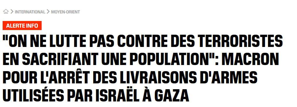 Тем временем Эмманюэль Макрон заявил, что Франция прекратила поставки Израилю оружия.
