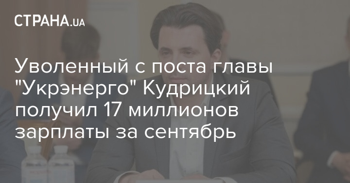 Уволенный с должности главы НЭК "Укрэнерго" Владимир Кудрицкий получил более 17 миллионов гривен заработной платы за сентябрь.