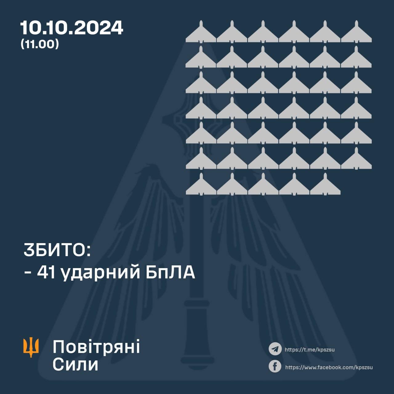 Также были сбиты 41 "Шахед" из 62. Некоторые до сих пор летают по Украине.