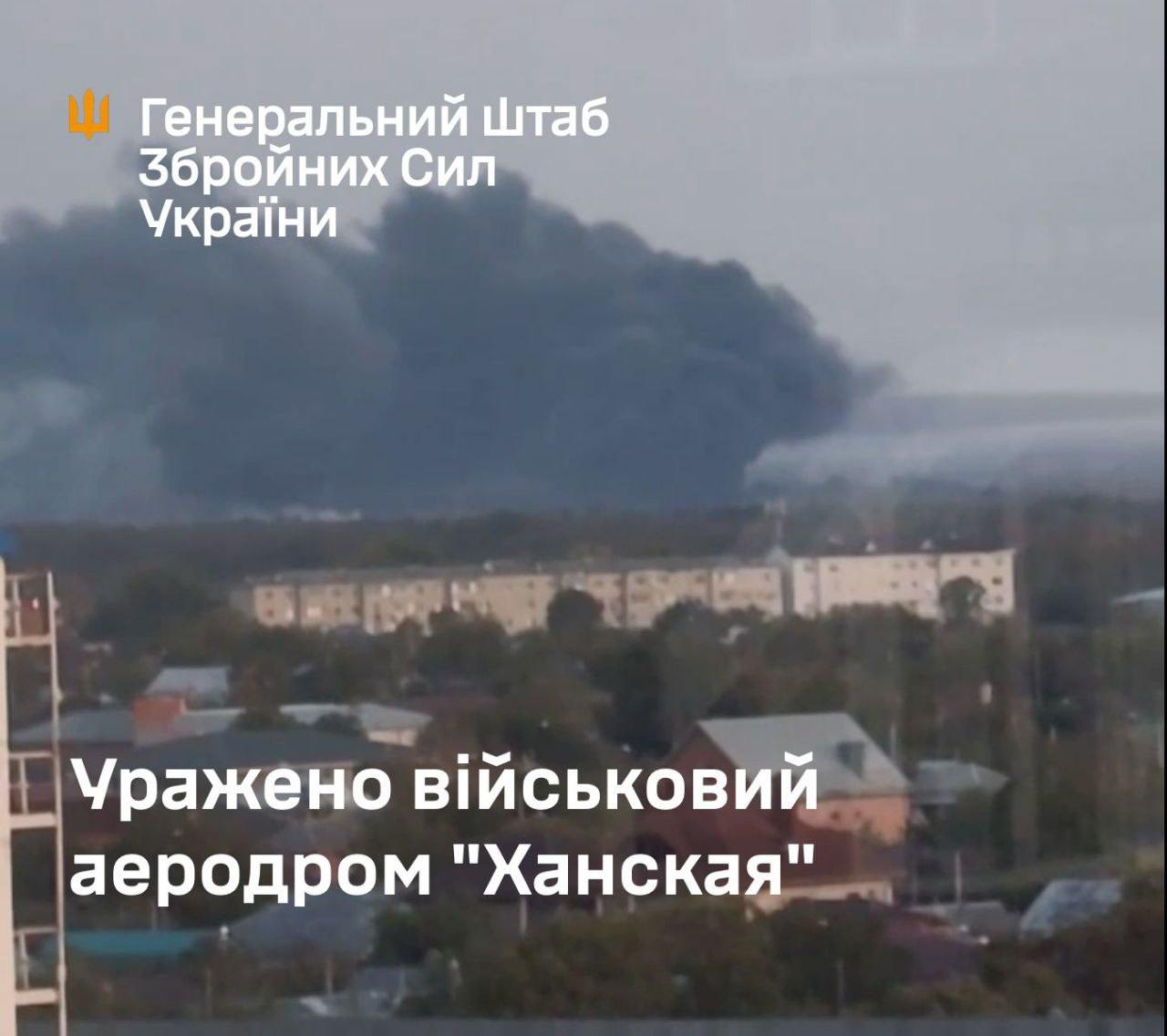 13:39 Генштаб официально сообщил об ударе по аэродрому "Ханская" в Адыгее.