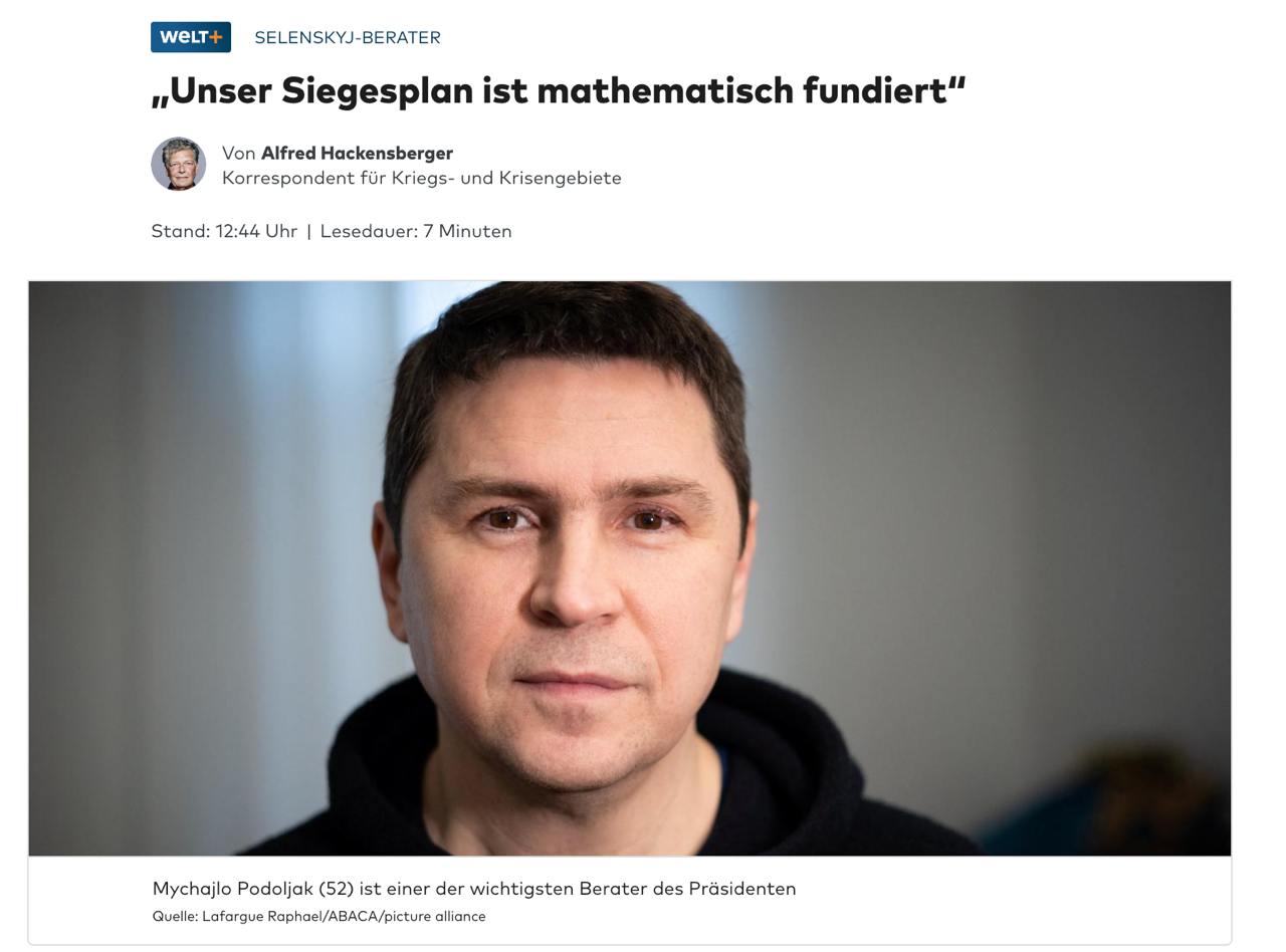 "У нас сегодня есть все инструменты, чтобы заставить Россию проиграть. Истощение РФ уже очевидно", - заявил советник главы ОП Михаил Подоляк немецкому изданию Die Welt.