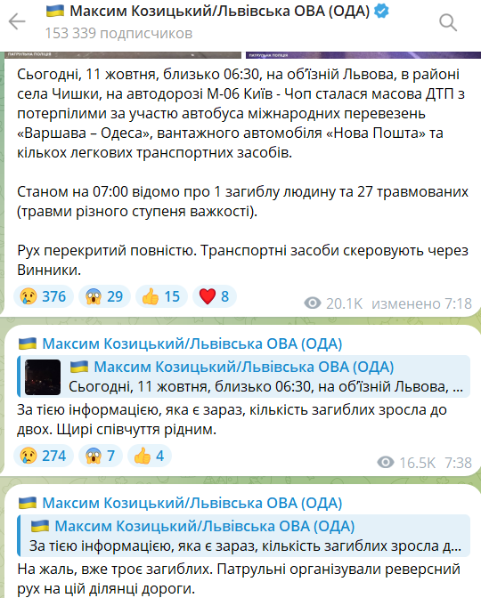Сегодня утром под Львовом на трассе Киев - Чоп произошло массовое ДТП с участием международного автобуса "Варшава – Одесса", фуры "Новой почты" и нескольких легковых авто. Есть погибшие и пострадавшие.