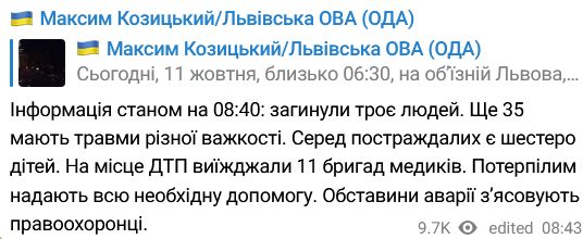 Об этом сообщил глава Львовской областной военной администрации Максим Козицкий в своем телеграм-канале.