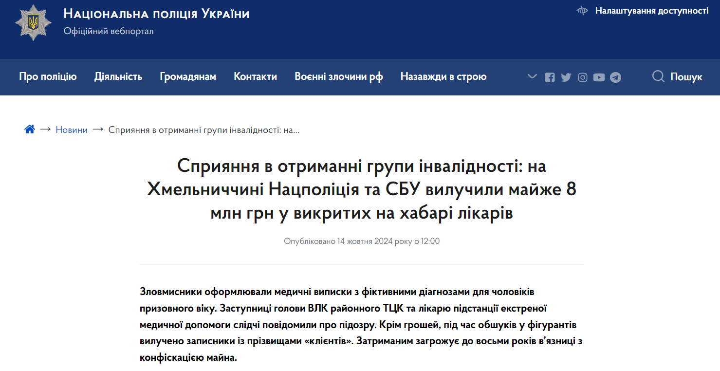 Напомним, с начала года были разоблачены 77 человек, "причастных к коррупционным преступлениям в сфере деятельности МСЭК" (они отвечают за выдачу заключений об инвалидности).