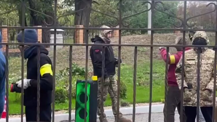 Отступая, один из сторонников ПЦУ открыл огонь, видимо, из травмата и распылял газ.  Полиция присутствовала, но не препятствовала.