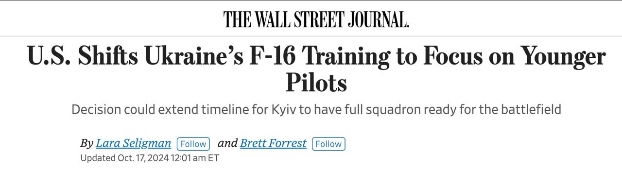 Из-за обучения курсантов вместо опытных пилотов сроки, когда Украина получит полную эскадрилью из 20 западных самолетов и 40 пилотов, могут отодвинуться на многие месяцы. В итоге техника и обученные специалисты попадут в ВСУ вряд ли раньше весны-лета 2025 года.