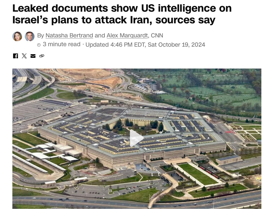 В США произошла утечка секретных данных о подготовке удара Израиля по Ирану - CNN