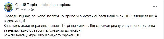 В Хмельницкой области военный ранил из пулемёта ребёнка в ногу, сбивая российский беспилотник типа "Шахед". Инцидент произошел ещё 27 августа.