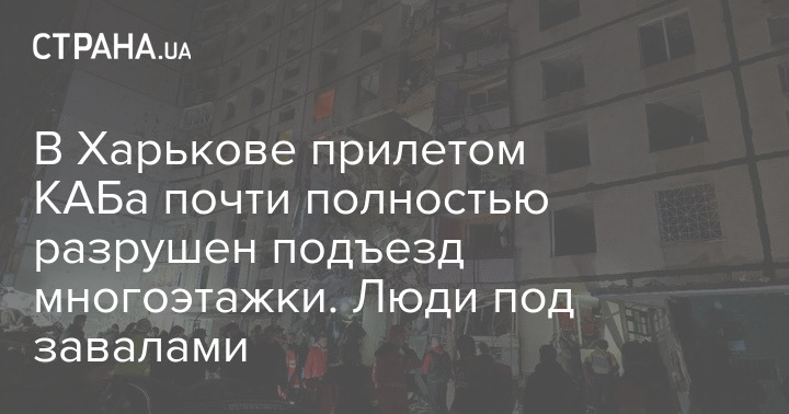 В Харькове прилетом КАБа почти полностью разрушен подъезд многоэтажки. Люди под завалами
