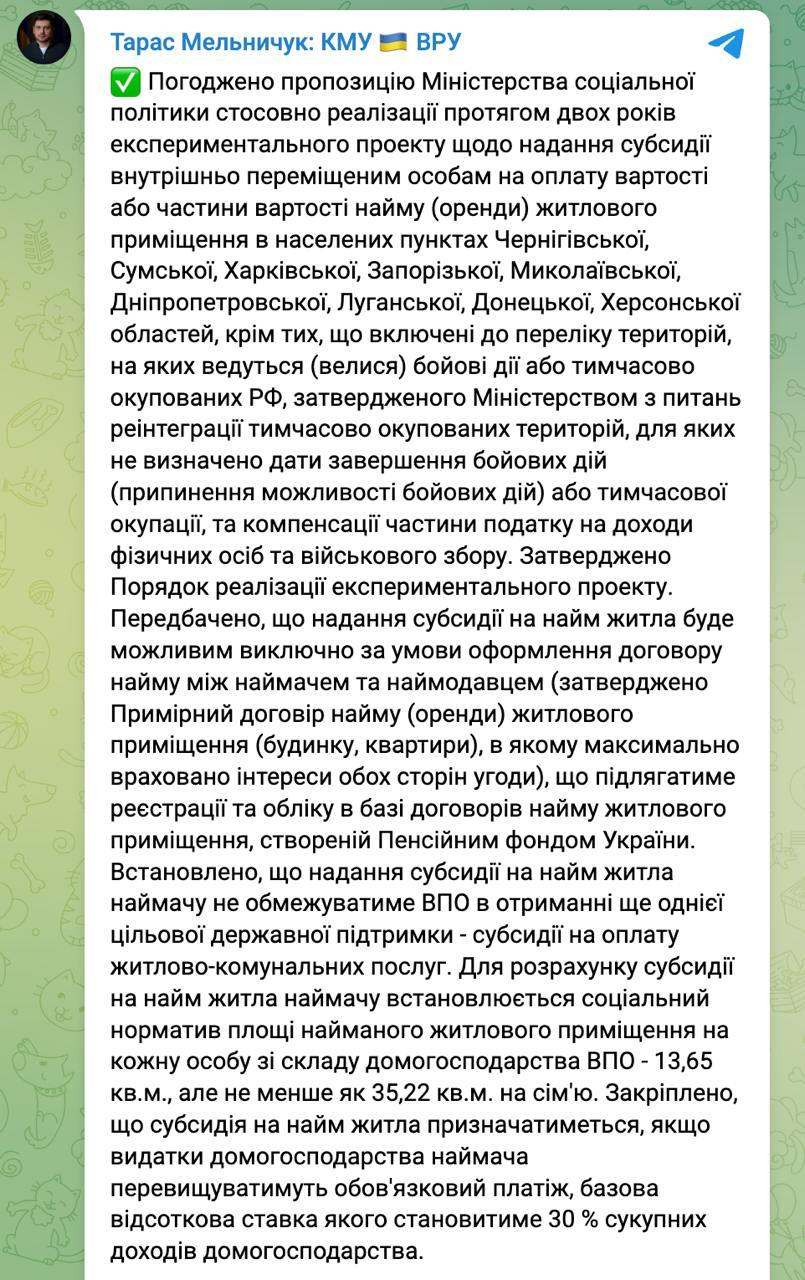Соответствующее предложение поддержал Кабинет министров, о чем сообщил в своем телеграм-канале его представитель в Верховной Раде Тарас Мельничук.