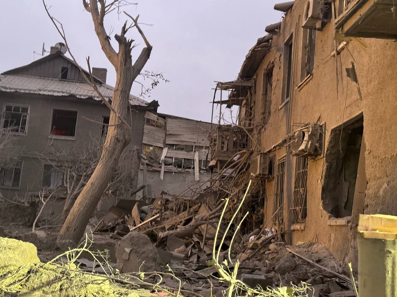 В результате ночной ракетной атаки в городе есть разрушение сразу на нескольких локациях, частично разрушено двухэтажное жилое здание. Также повреждены 13 многоквартирных и 2 частных дома, 30 авто. Повреждены корпуса больницы.