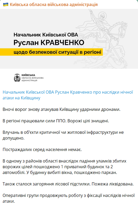 Напомним, вчерашней ночью россияне также атаковали Киевскую область дронами. Погибла женщина.