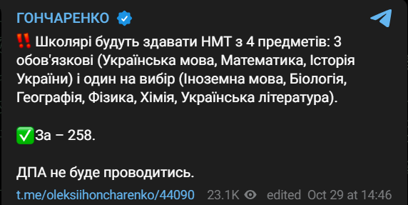 НМТ сдают только желающие поступить в высшие учебные заведения. Обязательных экзаменов в 4-м, 9-м и 11-м классах по-прежнему не будет.