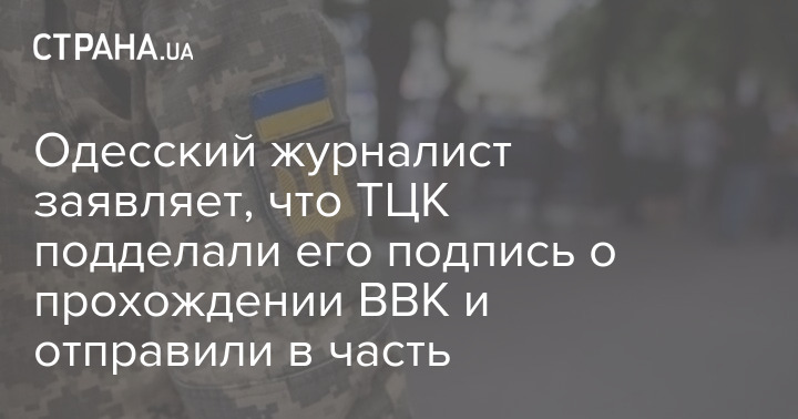 Одесский журналист Александр Тодоров заявил о своей принудительной мобилизации вопреки тому, что он не прошел военно-врачебную комиссию. Он утверждает, что его подпись на протоколе о прохождении ВВК подделали сотрудники Киевского ТЦК Одессы, после чего отправили его в воинскую часть.