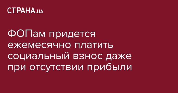 ФОПам придется ежемесячно платить социальный взнос даже при отсутствии прибыли