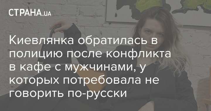 По ее словам, в кафе она пришла на кофе и для общения с сознательными людьми, но за соседним столиком разговаривали по-русски. Вместе со своим мужчиной она подошла к посетителям и "любезно попросила" перейти на украинский язык. К тому же, по ее словам, на дверях кафе висит табличка с просьбой не использовать русский язык (хотя, отметим, законы не запрещают клиентам заведений говорить по-русски).