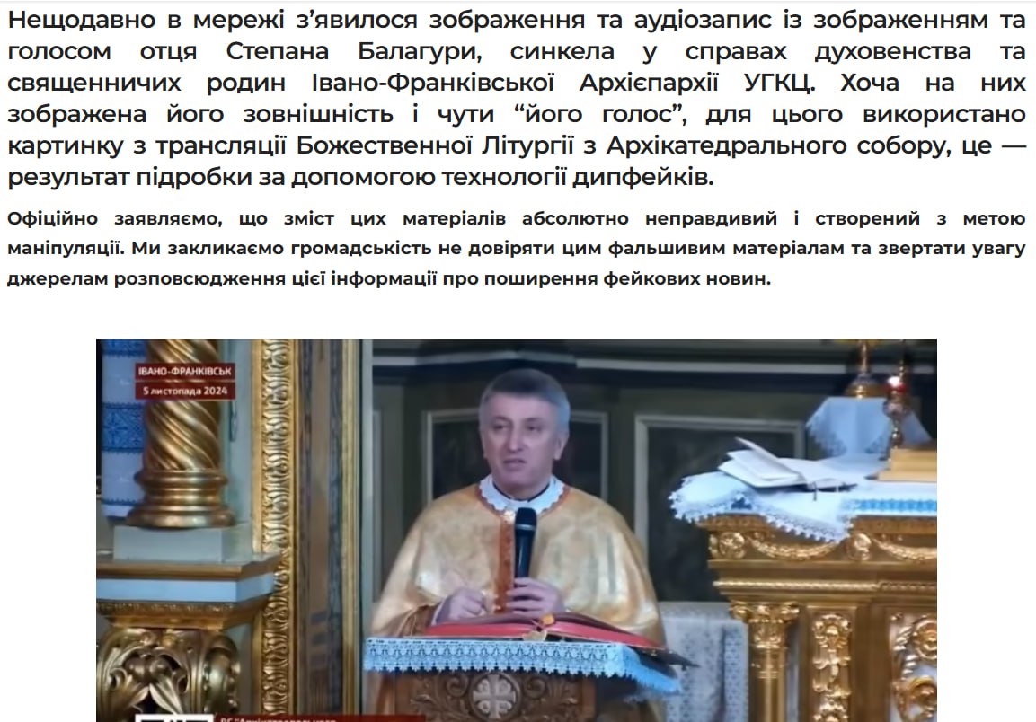 "Официально заявляем, что содержание этих материалов неправдиво и создано с целью манипуляции", - сообщили в пресс-центре УГКЦ.