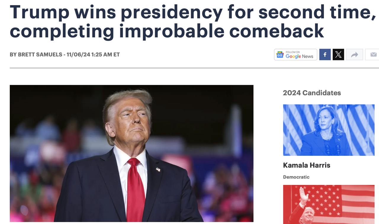 Утверждается, что республиканец уже набрал 270 голосов выборщиков, чего достаточно для победы.