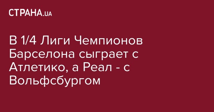 Пары 1/4 финала Лиги чемпионов выглядят так: Вольфсбург – Реал, Бавария – Бенфика, Барселона – Атлетико, ПСЖ – Манчестер Сити.