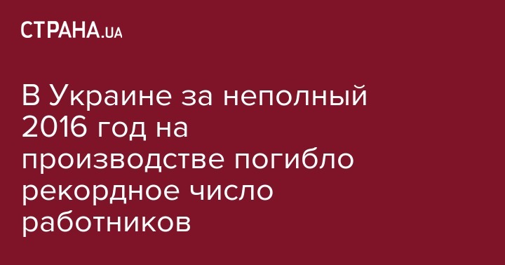 В Украине за неполный 2016 год на производстве погибло рекордное число работников