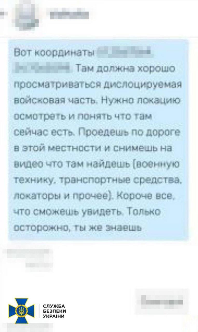 По версии следствия, 30-летний военнослужащий, проходивший службу в подразделении охраны, был дистанционно завербован военной разведкой РФ, пытался установить и передать места базирования подразделений ВСУ, СБУ и полиции.