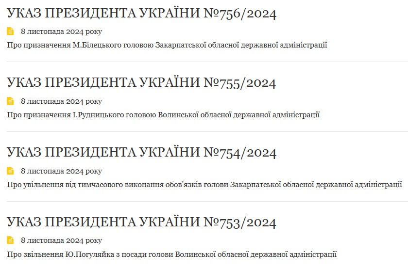 Третьим и четвертым указами в Закарпатье и.о. главы области Мирослав Билецкий получил постоянное место председателя ОГА.