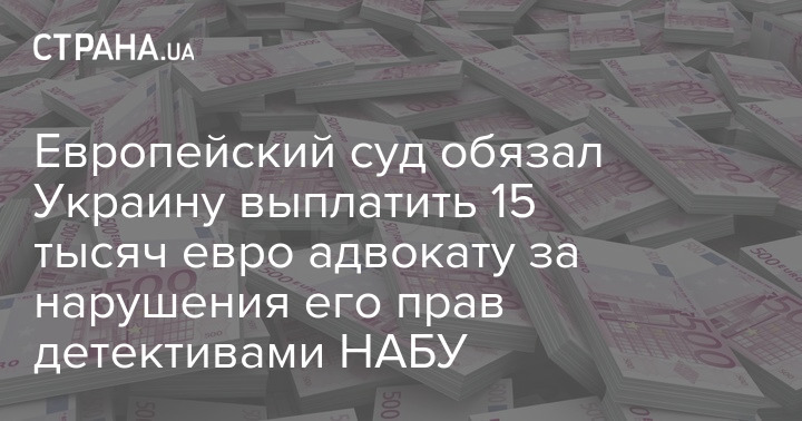 Украина должна будет выплатить адвокату Александру Сергиенко 15 000 евро компенсации за нарушение прав со стороны детективов НАБУ во время проведения расследования по делу экс-нардепа Александра Онищенко, адвокатом которого является Сергиенко.