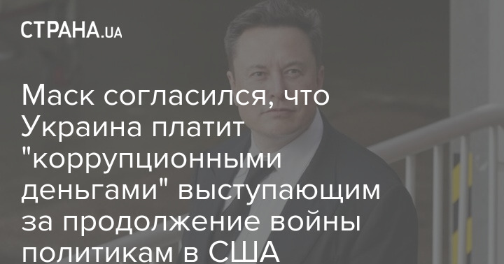 Бизнесмен Илон Маск согласился с тем, что Украина платит "коррупционными деньгами" американским политикам, выступающим за продолжение войны.