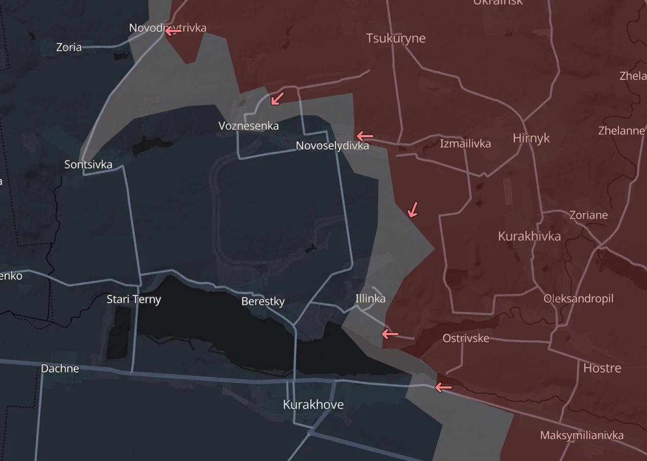 Напомним, что в Старых Тернах находится дамба Кураховского водохранилища, захват которой будет означать с высокой вероятностью окружение Курахово с тыла к западу от города.