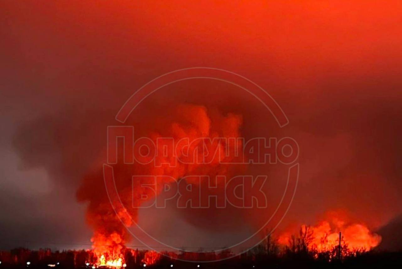 На шесть утра на объекте в Брянской области продолжался сильный пожар. Результаты поражения уточняются", - заявляют в ГШУ.