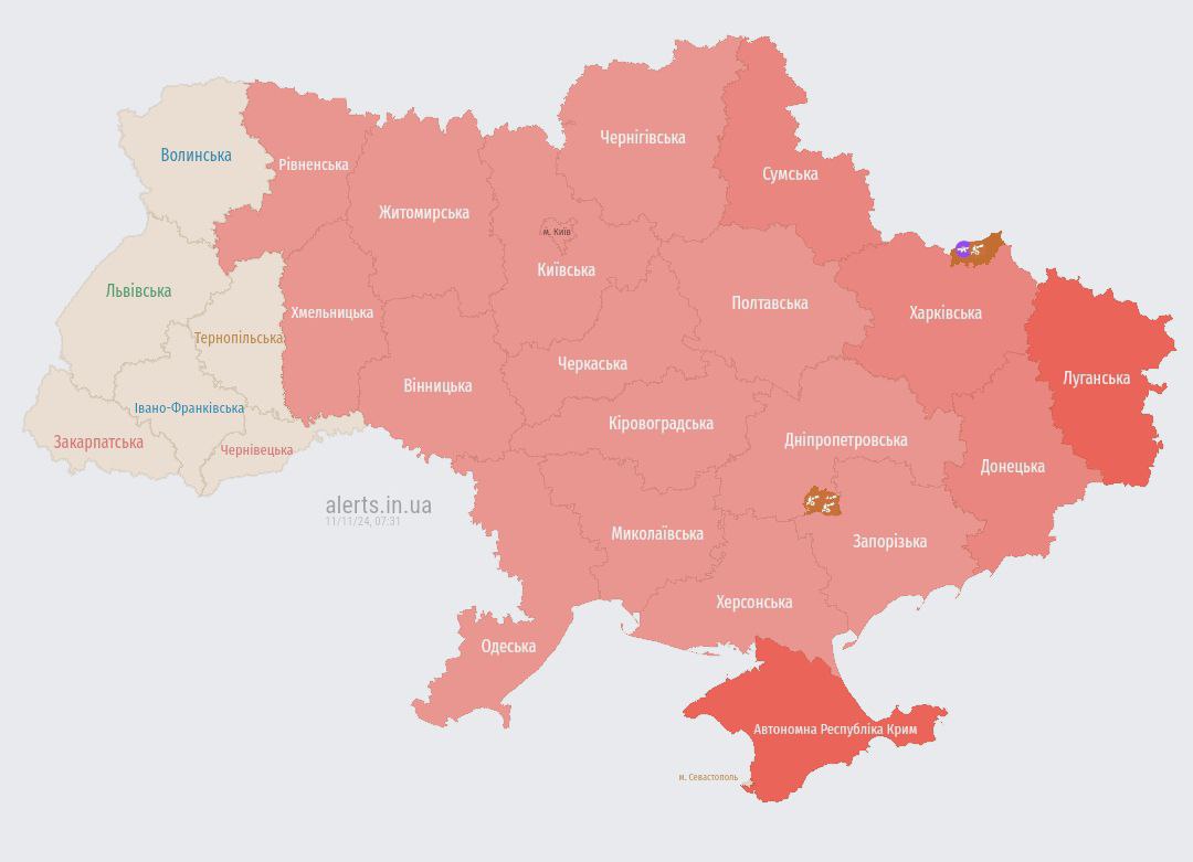21.27 Тревога в Киеве и ряде областей. Причина - беспилотники.