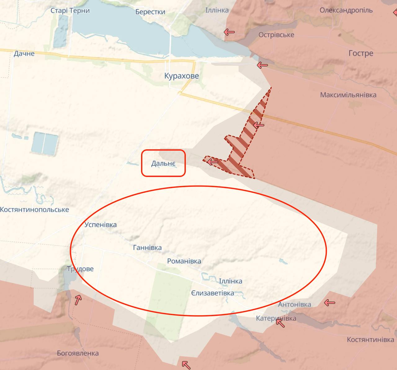 Данное продвижение подтверждает карта Deep State. До трассы Курахово-Успеновка россиянам остается около 2 км.