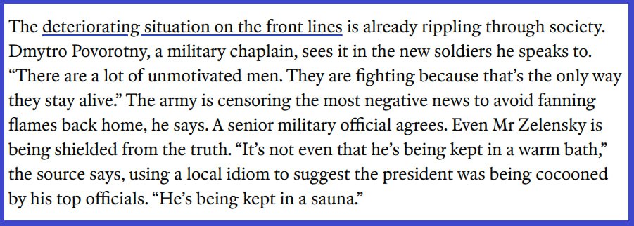 Он заявил, что армия цензурирует негативные новости, чтобы не раздувать панику в тылу. И даже Зеленского ограждают от правды.