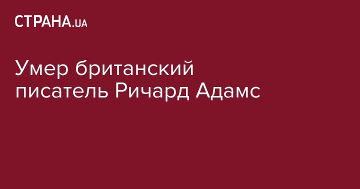 Английский писатель Ричард Адамс умер в возрасте 96 лет. О смерти сообщила его дочь, сообщает ВВС.
