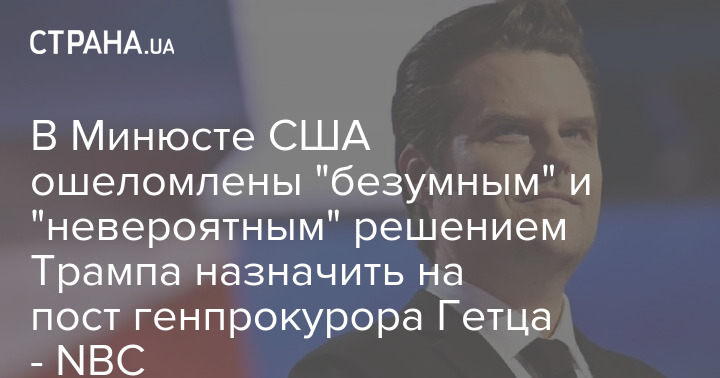 Сотрудники Министерства юстиции США ошеломлены "безумным" и "невероятным" решением Дональда Трампа назначить на пост генерального прокурора Мэтта Гетца.